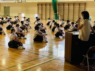 さて本日6限目、千種小学校栄養職員の前田真由子先生にご来校いただき、1,2年生対象の「食」をテーマとした講演会が行われました。前田先生は、ちくさ学校給食センターで栄養管理に基づいた献立の計画や食材調達、経理、そして調理補助を含め大変お世話になっている先生です。私も時々、「今日のタコライス、美味しかったです~っ!」とか「ポークカツもう一つ食べたかったです~」とか個人的な感想を電話でお伝えするのですが、今日は作り手の立場から生徒たちに食の大切さについてお話いただいたのです。「食べることは生きること」、「健康を維持するための食」、「学校給食の栄養」など様々な切り口でお話をいただきましたが、お話を聞いていて「好き嫌いでなく、健康な体を維持するためにしっかりと食事をとる必要がある」と改めて再認識されました。最後に前田先生から、「無理なダイエットなどせず、3食きっちり食べること。そして自分の体を考えた食事をしてください」とアドバイスをいただきました。生徒を代表し、藤井大樹くん(2年・山崎東中出身)が「当たり前に食べていたが、私たちの体を考えてくれていることを知り、今まで以上に感謝していただきます!」と謝辞がありました。