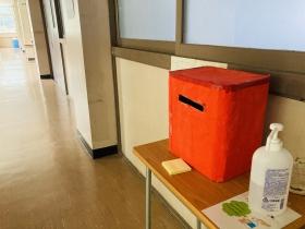 各HR教室前の廊下に置かれている赤い箱。「これは何だ⁈」と赴任当初から気になっていましたが、放課後にこの箱から用紙を取り出し、生徒会室で作業している生徒を発見しその謎が解けました。