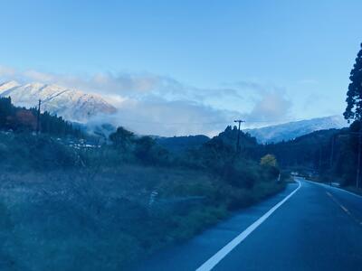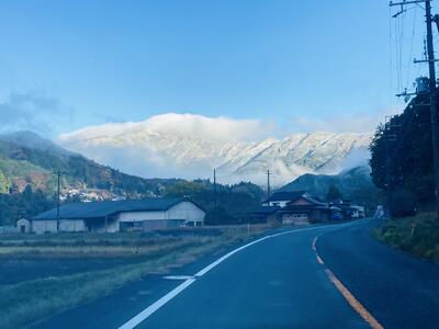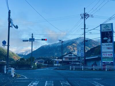 今朝の千種町は3℃(午前8時時点)とかなり冷え込みが強かったのですが、通勤道中で千種町に入った瞬間、山々が真っ白に…。日名倉山、後山、三室山など千種町を囲む山々はもちろん、学校周辺の低めの山々の山頂付近にもうっすらと雪が積もっていました。いやぁ、「そろそろかなぁ…」と思っていましたが、思っていたよりも早い初冠雪にテンションが上がりました。