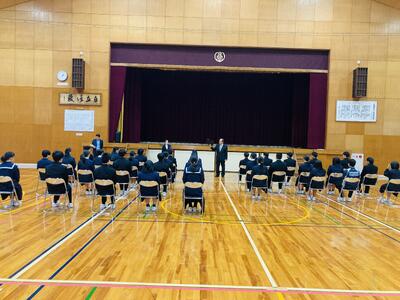 今日はもう「春爛漫」という言葉にふさわしい最高の陽気となりましたね。五分咲きほどに開花したサクラ、そして真っ青な青空のコントラストがメチャクチャ美しい一日でした。そんな日に、4月8日(水)に入学式を控えた合格者が本校に集いました。集まってもらった目的は3つ、1つ目は入学前に提出してもらいたい調査書類の提出、2つ目は入学式の流れの確認、3つ目は制服の受け渡しです。生徒たちは少し緊張した面持ちでしたが、全員が予定時間に集まり先生方の話に耳を傾けていて、見ている私も「いよいよ始まるなぁ…」とワクワクしてきました。