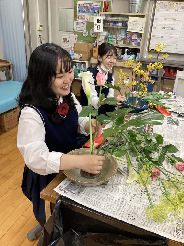 最近は華道部の様子を見てもらいやすくするために、保健室で活動しています。