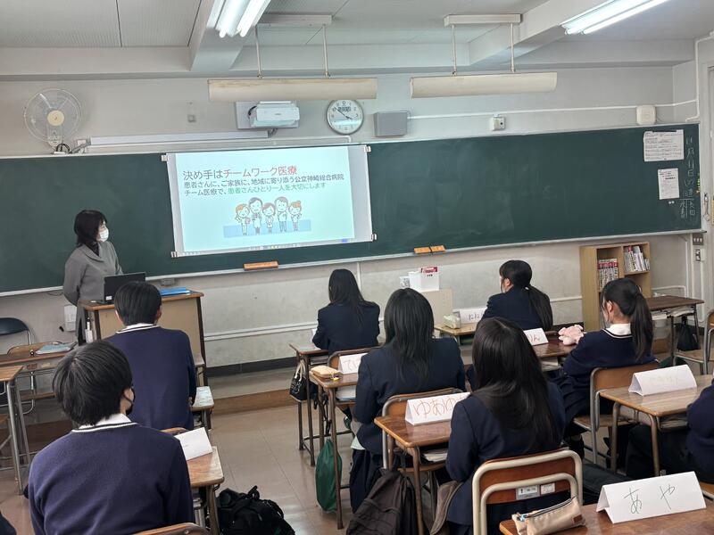 2学期8回目の講座は、11月11日(火)に公立神崎総合病院より看護師の大﨑明美先生にお越しいただき、講義をしていただきました。
