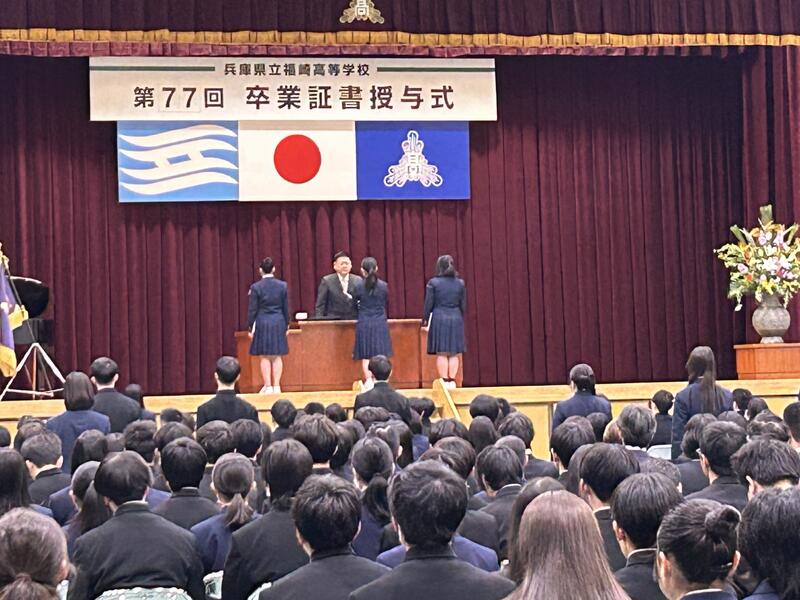 県立福崎高等学校創立110周年の式典で、76回生の先輩方と一緒に記念演奏をさせていただきました・・!