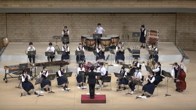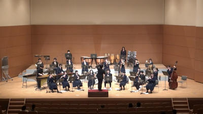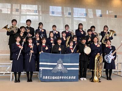 「福崎高校校歌」と、今年新たに作曲された「播磨福崎高校校歌」を演奏しました。「播磨福崎高校校歌」は、吹奏楽編曲として世界初演となりました。私たちの演奏が、運動部のみなさんの力強い行進に花を添えることができたことをうれしく思います。