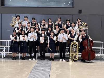 私たちは「応援されるバンド」を目指して日々練習に励んでいます。昨年度は、吹奏楽コンクールで11年ぶりの金賞を受賞し、他にも学校行事や様々なイベントで演奏の機会を頂き、活動の幅を広げてきました。練習ではどんなときも諦めず、限られた時間で地道な努力を重ね、合奏をするたびに成長を実感することも多くなりました。もちろん楽しいことばかりではありませんでしたが、多くの人に支えられながら一生懸命練習に打ち込み、吹奏楽の楽しさと難しさを味わったこの1年はかけがえのない思い出となりました。