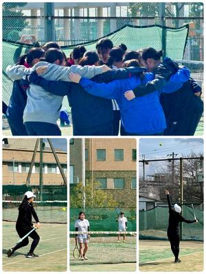 明るく、楽しくをモットーに練習をしています。ソフトテニス経験者、未経験者も大歓迎。放課後、テニスコートに見学に来てください♫