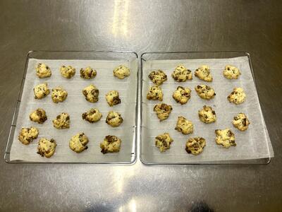 今年度最初の活動ではドロップクッキー」を作りました。作り方は簡単ですが、チョコレートをたっぷり入れておいしく仕上げました。