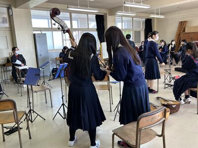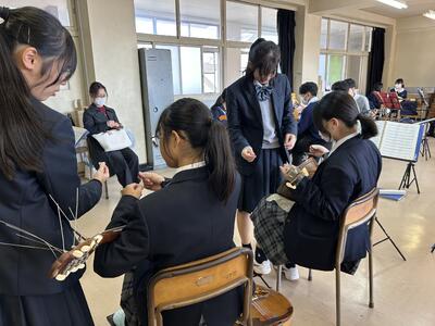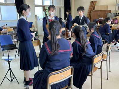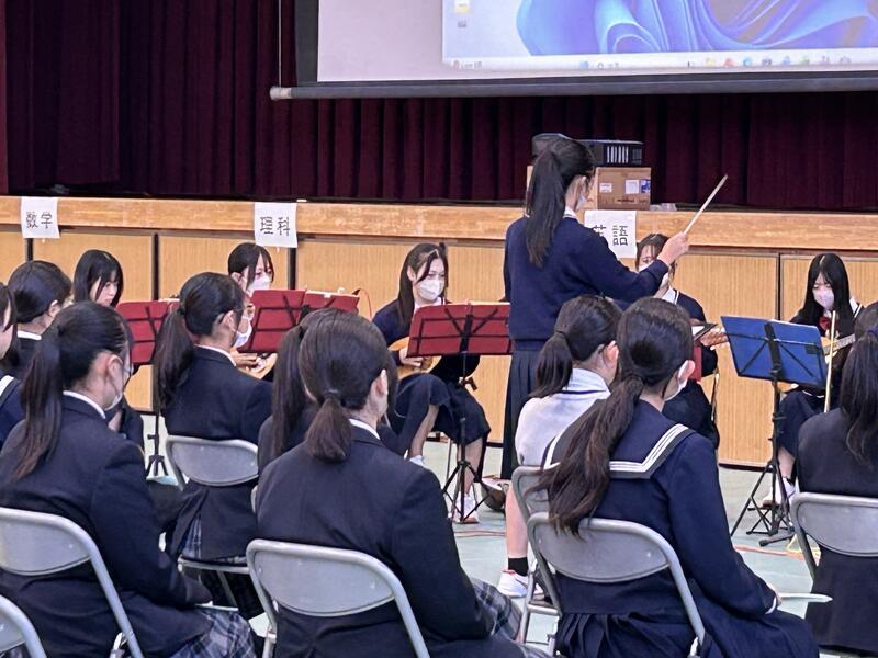 部活動見学では、楽器の紹介をしたり、演奏を聴いていただきました・・!