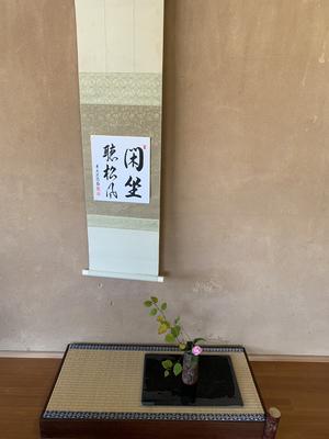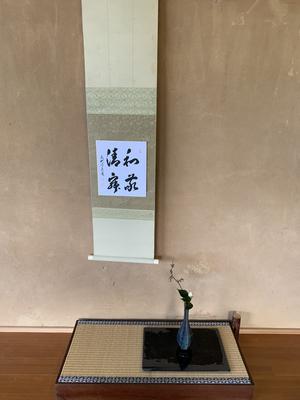 お軸「和敬清寂」※主人と賓客がお互いの心を和らげて謹み敬い、茶室の備品や茶会の雰囲気を清浄にするいう意。