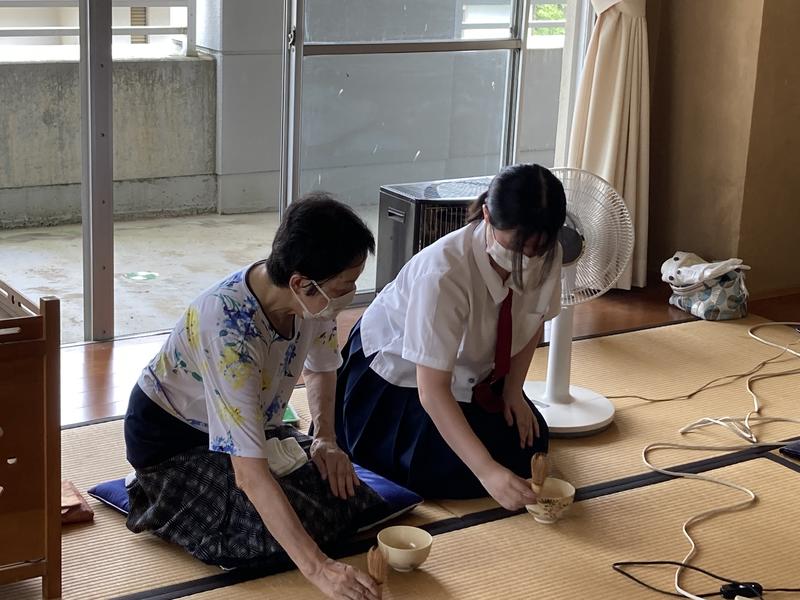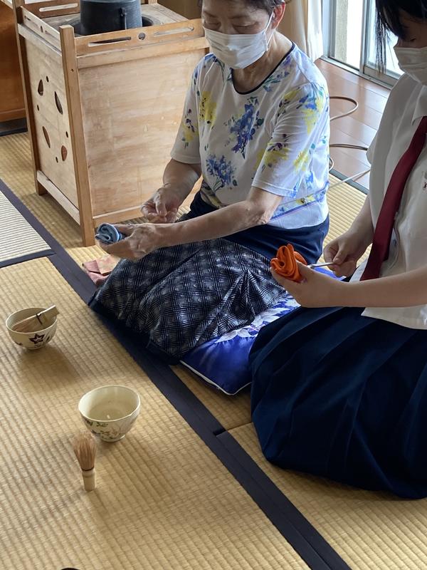 2年生はふくさのさばき方や千歳盆でのお点前を復習しています。