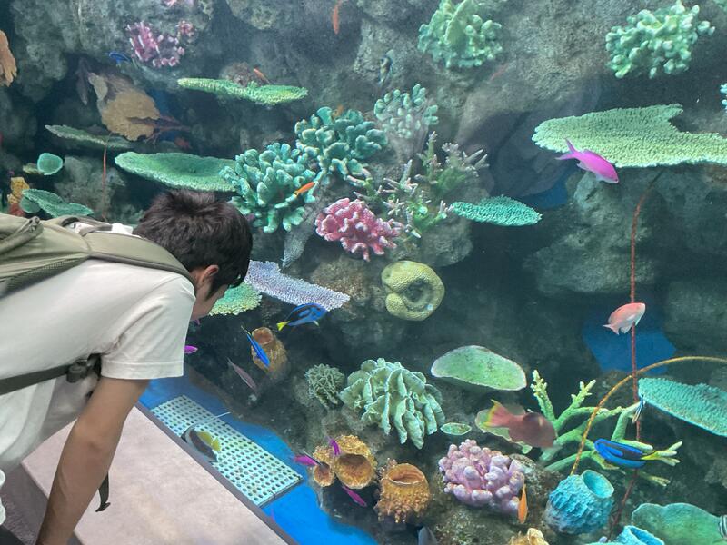 高等部1学年は、10月8日に社会見学で神戸須磨シーワールドへ行きました。汗ばむくらいの陽気の下、西日本唯一のシャチやイルカのパフォーマンスを見て、水しぶきに「キャー」と声をあげながら楽しみました。「水の一生」をテーマにした展示では、事前に調べた海の生き物の実物を見て、その大きさや美しさに驚いていました。また、お昼にはいつもの給食と違い、各ご家庭のお弁当を美味しく食べました。帰校後も、暑さからの疲れは見られながらも「楽しかった!」という声を多く聞くことができました。