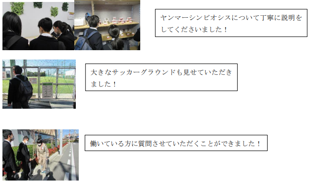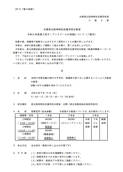 9月5日(金)阪神友愛食品株式会社 能力開発センター(職業訓練校)を見学させていただきました。台風の影響で実施できるか心配でしたが、バスの遅延はあったものの、無事に参加生徒は全員集合でき見学することができました。能力開発センター(職業訓練校)の概要を聞き、その後訓練生の授業の様子を見せていただきました。訓練生の返事や報告の仕方、作業の進め方に圧倒されると同時に学ぶべき点がたくさんあることに気づかされました。今後の進路選択に役立つ良い機会でした。訓練校見学の後は阪神甲子園駅で4グループに分かれ、事前に調べた昼食場所に行き、ランチタイム。おいしかったのかとても良い表情でご飯を食べていました。