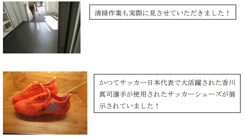 最後には、食堂の方からも、「食堂の使い方のルール」や「あたたかい料理を提供するために、生徒達が食べに来る時間に合わせて調理されていること」、「たくさんの仕事量を2~3名の従業員でされていること」など、普段は教えていただけないことを直接教えていただくことができました。
