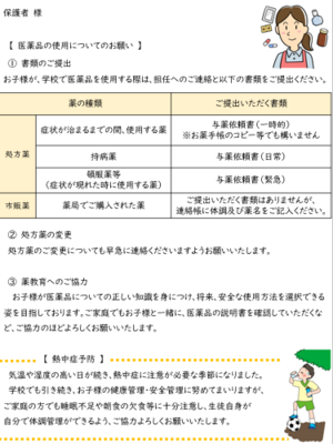 説明の最後に職員の方から学校生活で大事なこととして「学校を休まない」「体力をつける」「素直でいる」とお話いただきました。