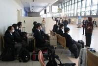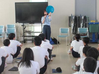 学校での事前学習では「挨拶・表情・学ぶ意欲」の3つの大切さについて話をしました。到着早々、体育館に入り大きな声で挨拶をし、すぐにメモ帳を取り出している姿にはとても感心しました。3つの大切なことにプラスして「疑問を持って話を聞く。疑問に思ったことを質問することが大切」と話もしました。すると最後の質疑応答では8人の生徒が質問をしていました。