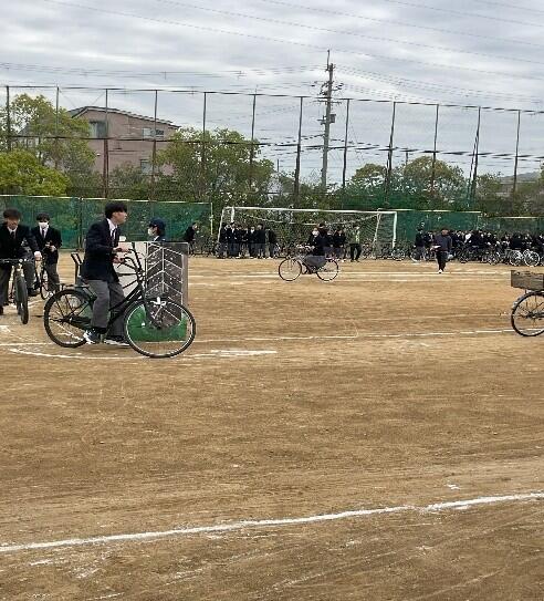 尼崎北警察署の方による講話を聞き、交通安全のDVDを視聴した後、グラウンドで実際に実技講習を受けました。4月から自転車も「青切符制度」が導入され、注意しなければならないことが増えました。特にスマホの「ながら運転」は1万2千円の罰金を払わなければなりません。また、その他のルール解説、自転車保険の義務化、マナーの大切さ等について詳しく教えていただきました。6限はグラウンドで武庫総合高校の生徒とともに実技講習が行われました。今後さらに安全に留意して自転車の運転を心掛けたいと思います。