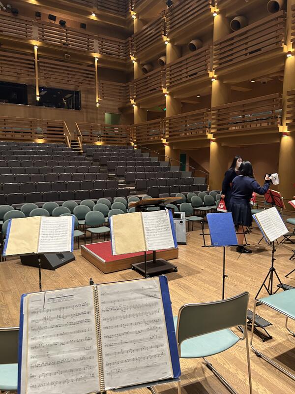 リハーサル後、ステージに椅子を並べて準備完了です・・!