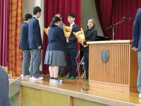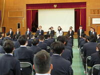 生徒を代表して生徒会長が、感謝の言葉を述べた後