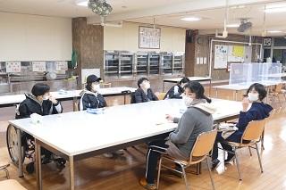 食事会では、栄養教諭と調理員さんがクリスマス特別メニューを用意してくださり、みんなでおいしくいただきました。