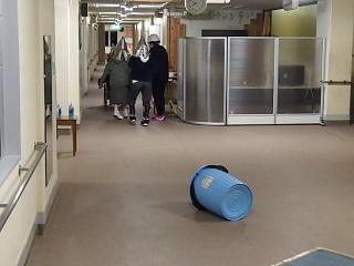 舎生は個人で準備していた非常用セットや毛布などを持ち、それぞれの場所へ落ち着いて避難を行いました。