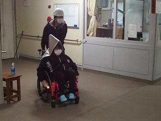 日々、忙しい舎生を労おうと職員主催で行い、舎生は仮装をして2~3人の組で順次スタートしました。