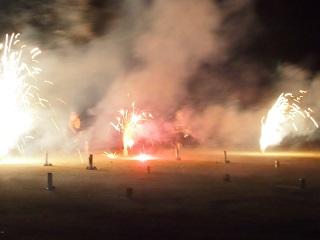 模擬店終了後、南グラウンドで恒例の花火大会も盛大に行いました。当日、少し天気が心配でしたが、播磨の夜空にきれいな花火が打ち上がりました。納涼も体感でき、すばらしい夏祭りとなりました。