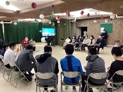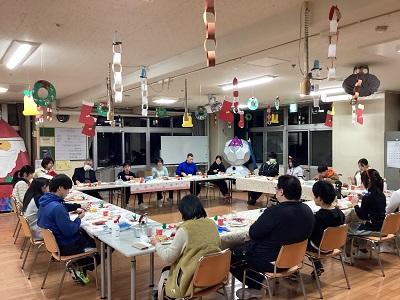 食事会では、栄養教諭と調理員さんがクリスマス特別メニューを用意してくださり、みんなでおいしくいただきました。