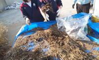 地域デザイン類型3年生の3名が、2025年7月から加古郡衛生センターで雑草から肥料を作ってきました。2026年の1月下旬に加古郡衛生センターからの撤収作業を行い、肥料もどき?を学校に持ち帰っていましたが、まだ肥料として完成していませんでした。そこで、校務員さんと共に学校の落ち葉や米糠を混ぜ、改めて学校で肥料づくりを行いました。