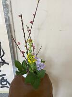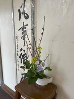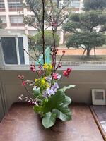 今年度最後の華道部の生け花が校長室前、事務室前、玄関に生け花を飾ってくれました。
