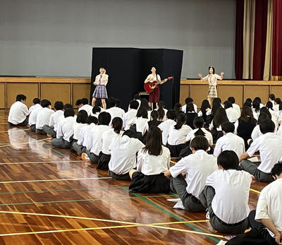 本校からは生徒会が司会、放送部が音響などの運営に携わり、筝曲部と吹奏楽部がステージで演奏しました。