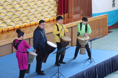 友情出演として本校、谷本先生の中国武術演武と元職員の中安先生がピアノ演奏を行いました。ホールには満席の観客が集まり、佐伯播磨町長の誕生日祝いもあるなど多彩な演出と岡部先生の素晴らしい歌声と三味線による民謡の聴き応えのあるコンサートでした。