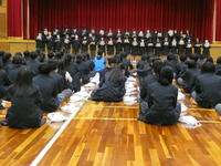 2月27日(木)、39回生の同窓会入会式を行いました。その後、皆勤賞や功労賞が授与され、39回生からは校名入りテントを記念品としていただきました。