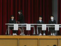 校長先生からの「跳びガエル・茹でガエル」の式辞のあと、表彰伝達で放送部の活躍が表彰され、新生徒会の認証式が行われました。