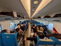 上越新幹線車内ではお昼ご飯を食べる姿も。
