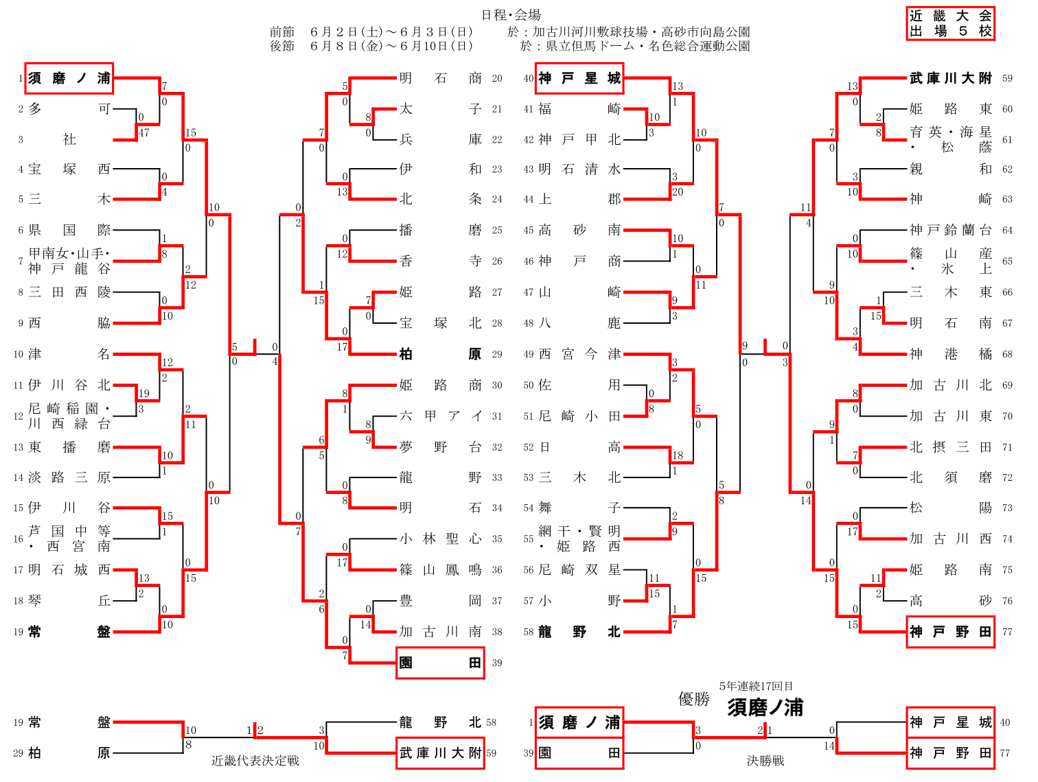 ※ 1回戦を勝ち上がったチーム、シードチームは、6/2(月)午前中までに、