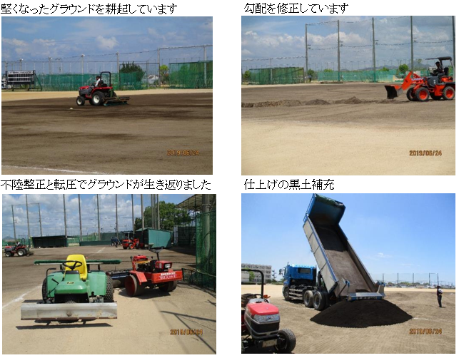 土砂の流失による勾配や表土の硬質化・凸凹を解消して実践練習できる環境に改善しました。
