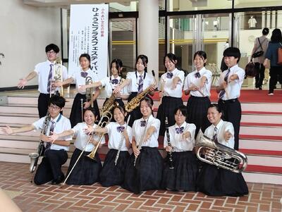 9月21日(日)、SHOWAグループ市民会館で開催された「ひょうごブラスフェスティバル」に「加印地区小編成高等学校大集合バンド」の一員として参加しました。加古川北・高砂南・東播工業・松陽高校とヒガハリとの合同チームで、約1か月かけて練習した成果を披露しました。男子部員10名で披露した「タンバリン隊」は会場から大きな拍手をいただき大いに盛り上がりました! このメンバーで10月5日(日)にもう一度演奏するので、みなさまぜひお越しください!