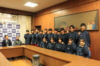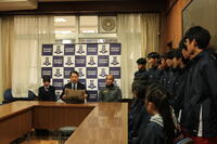 校長先生と、生徒会長から激励の言葉をかけていただき、兵庫県で男子・女子共に近畿大会に出場する高校は数校しかありません。