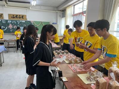 6月5日(木)に実施した豊饒祭において、2学年(51回生)“自然と人間探究類型”の生徒が中心になって「ヒガハリ春のパン祭り」と題してパンの販売を行いました。 稲美町で人気のベーカリー4店(パン・デ・ノブ、ダディーズ・ベーカリー、ふくふく、りとは)へ事前にインタビューを行い、なぜ稲美町に店を出したのか・パンへのこだわり・稲美町への想い、などを中心にお話を伺いました。その内容を1枚のポスターにまとめて掲示し、PRすることで、稲美町の活性化に繋がればという生徒の想いから実現した企画でした。また、本類型の生徒は「地域の問題解決」をテーマに活動しており、伺った内容が今後に生かされることも期待できそうです。 当日の様子は、6月11日(水)の神戸新聞(朝刊)にも掲載されました。ぜひご覧ください。