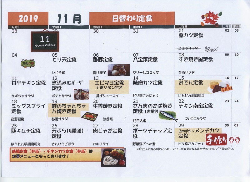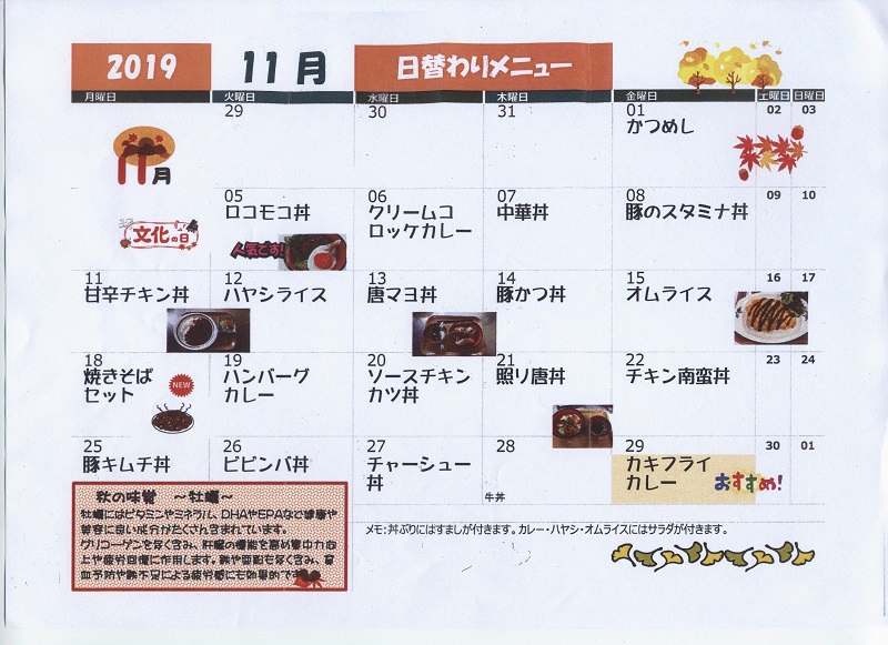 だんだんと寒さが増してくる11月は、食堂の温かいメニューが嬉しいですね。
