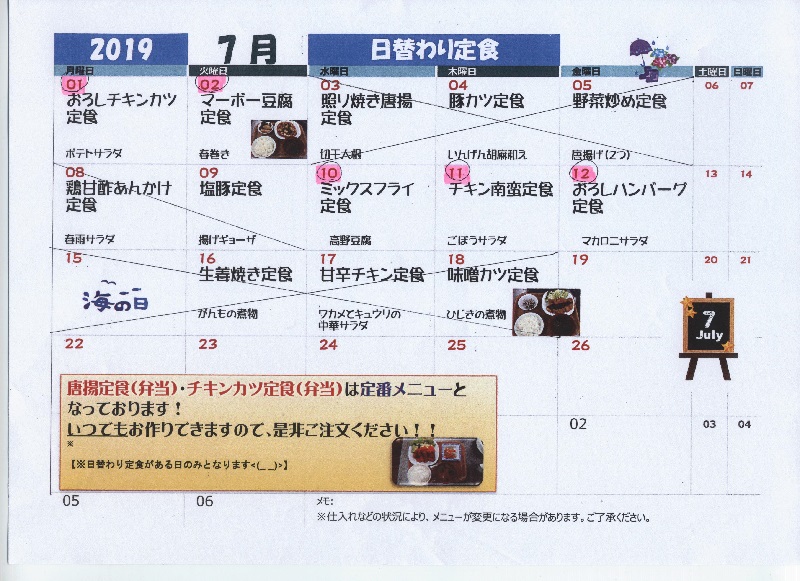 | 日 | 月 | 火 | 水 | 木 | 金 | 土 |