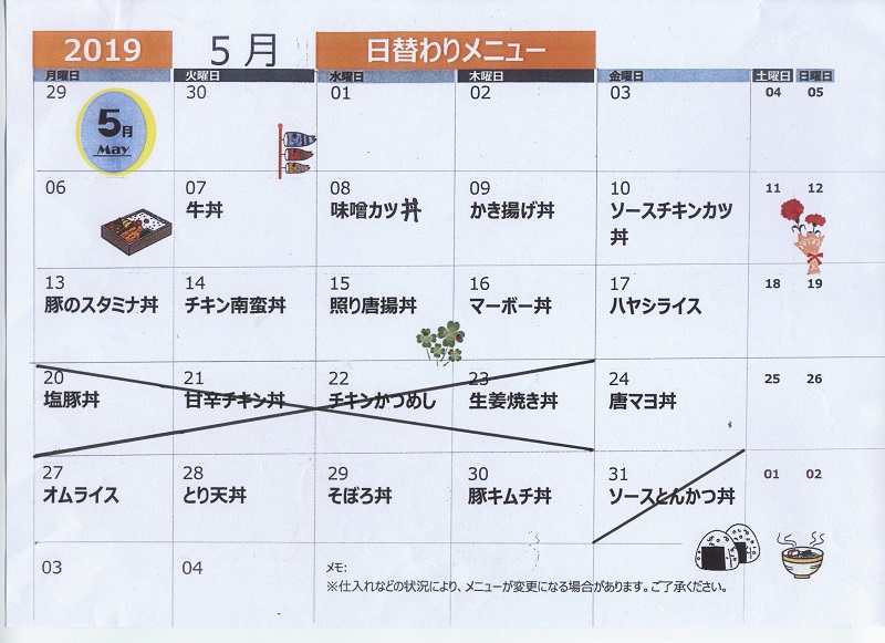 | 日 | 月 | 火 | 水 | 木 | 金 | 土 |