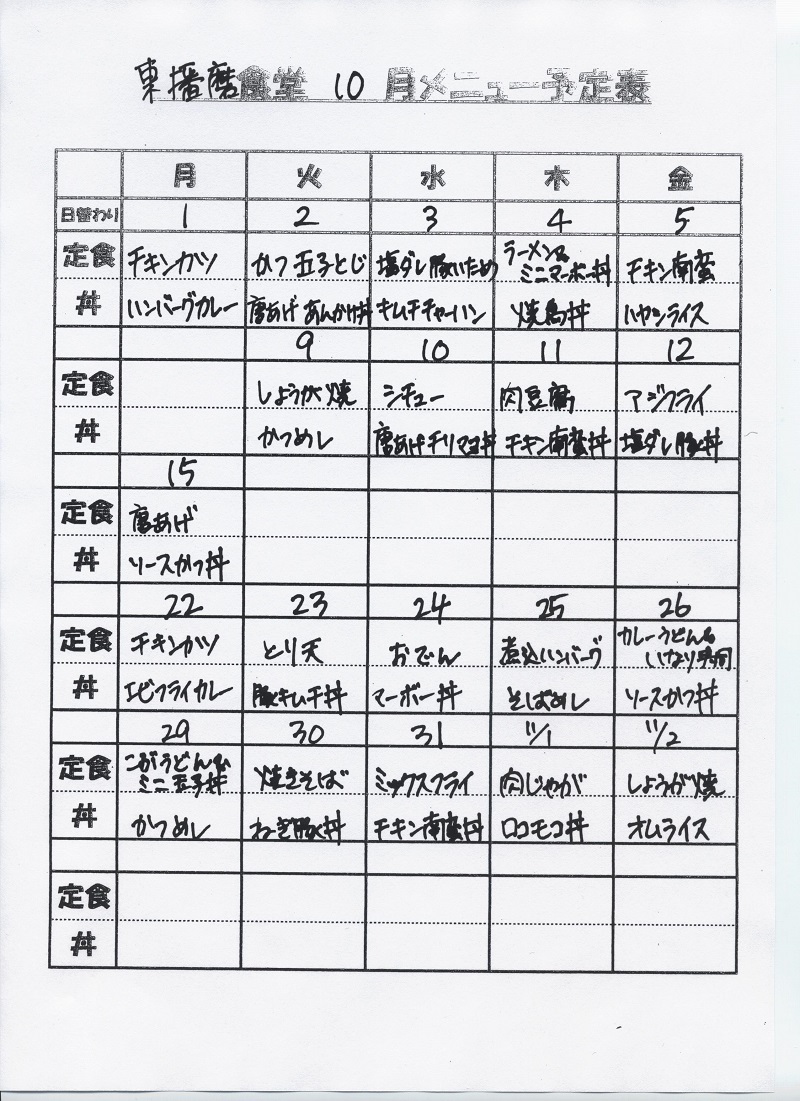 食堂から今月の日替わり定食と日替わり丼のメニューが届きました。
