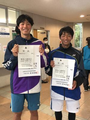 春季東播大会は、4月22日(土)に男子個人戦が開催されました。秋季新人大会で個人戦優勝を果たした莊所・永吉ペアは、本大会でも決勝に駒を進めました。22日は日没のため決勝戦は延期となり、29日(土)団体戦の最初に試合を行いましたが、本来の力を発揮できないまま敗退。準優勝となりました。しかし、この試合からの切り替え・修正をしっかり行い、団体戦ではそれぞれにチームを牽引してくれました。