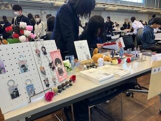 昨年度の総合文化祭の様子です。割り当てられたブースに、作成した部誌と好きなキャラクターの小物をディスプレイしました。