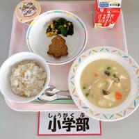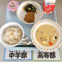 今日は、食育献立ということで、旬の食材と卒業生の育てたお米を取り入れた献立になっています。