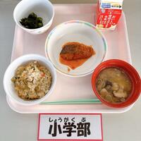 どんどろけめし さわらのヤンニョム焼き わかめの酢の物 白ネギのみそ汁 牛乳