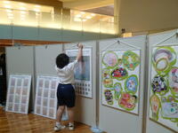 高等部2年生が、本校小学部・中学部・高等部の美術作品を展示する作業を行いました。