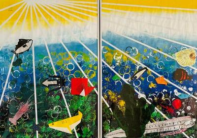 本校中学部2年生と播磨中学校、播磨南中学校が間接交流で作成した絵画パネルです。(合作です)