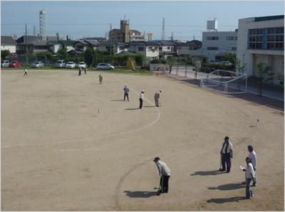 毎年、10月から11月に地域のシニアクラブの方々と本校グラウンドでグランドゴルフを行って交流を深めています。